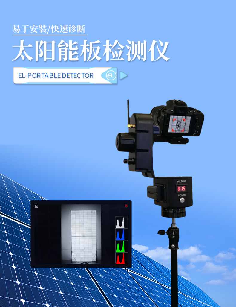 该检测仪主要基于电致发光(EL)原理工作。当对光伏组件施加正向偏置电压时,组件中的电子和空穴会复合并释放出光子,从而产生电致发光现象。便携式EL检测仪能够捕捉这一发光过程,并通过高分辨率的成像系统将组件内部的缺陷清晰地呈现出来。