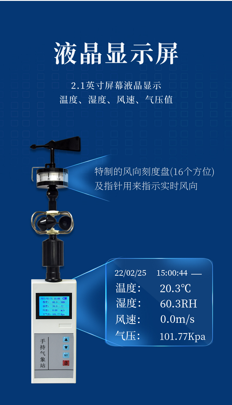 小巧轻便:便携式手持气象站通常采用紧凑的设计,体积小巧,重量较轻,可轻松放入背包甚至口袋中。无论是户外探险、野外科研考察,还是日常的气象监测活动,用户都能毫wu负担地携带它前往任何需要的地方,随时随地开展气象观测工作。